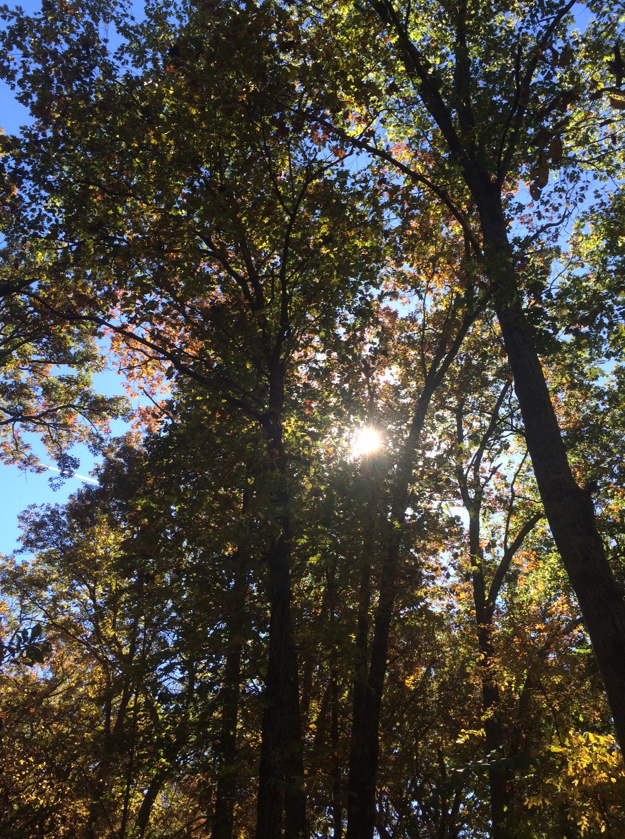 As I walked on the trails, leaves and acorns occasionally dropped, and I enjoyed the golds, the light tans, and the occasional reds. Even though I was in woodlands, I was reminded of those wonderful Minnesota autumn days walking home from school, leaves everywhere, that beautiful span of time before the cold began its numbing descent. And I found myself thinking of Robert Frost’s poetry, the poet whose work has been close by me, dating back to high school. Images of trees, of leaves, of autumn, all in that controlled, artful metrical verse.