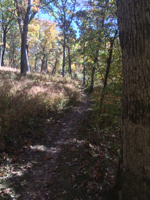 I’m in Missouri attending a creative-writing pedagogy conference at the University of Central Missouri, and because the conference is smaller, I have had some down time to let my mind relax. The weather’s been gorgeous, compared to back home in Central TX. 60s, no humidity, nice breeze. Before yesterday afternoon’s sessions, I went to Knob Noster State Park and hiked for an hour on two trails. It was the right weather for my favorite wardrobe: jeans and a T-shirt.